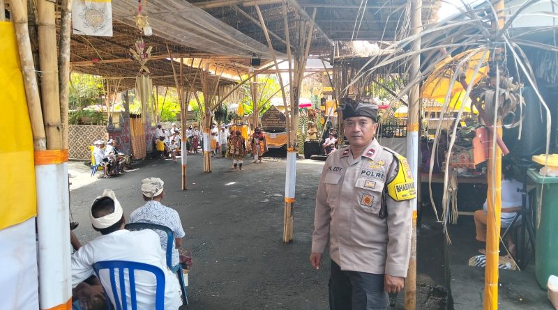 Bhabinkamtibmas Aan Pengamanan Karya Agung di Pura Dadia Agung Pasek Gelgel
