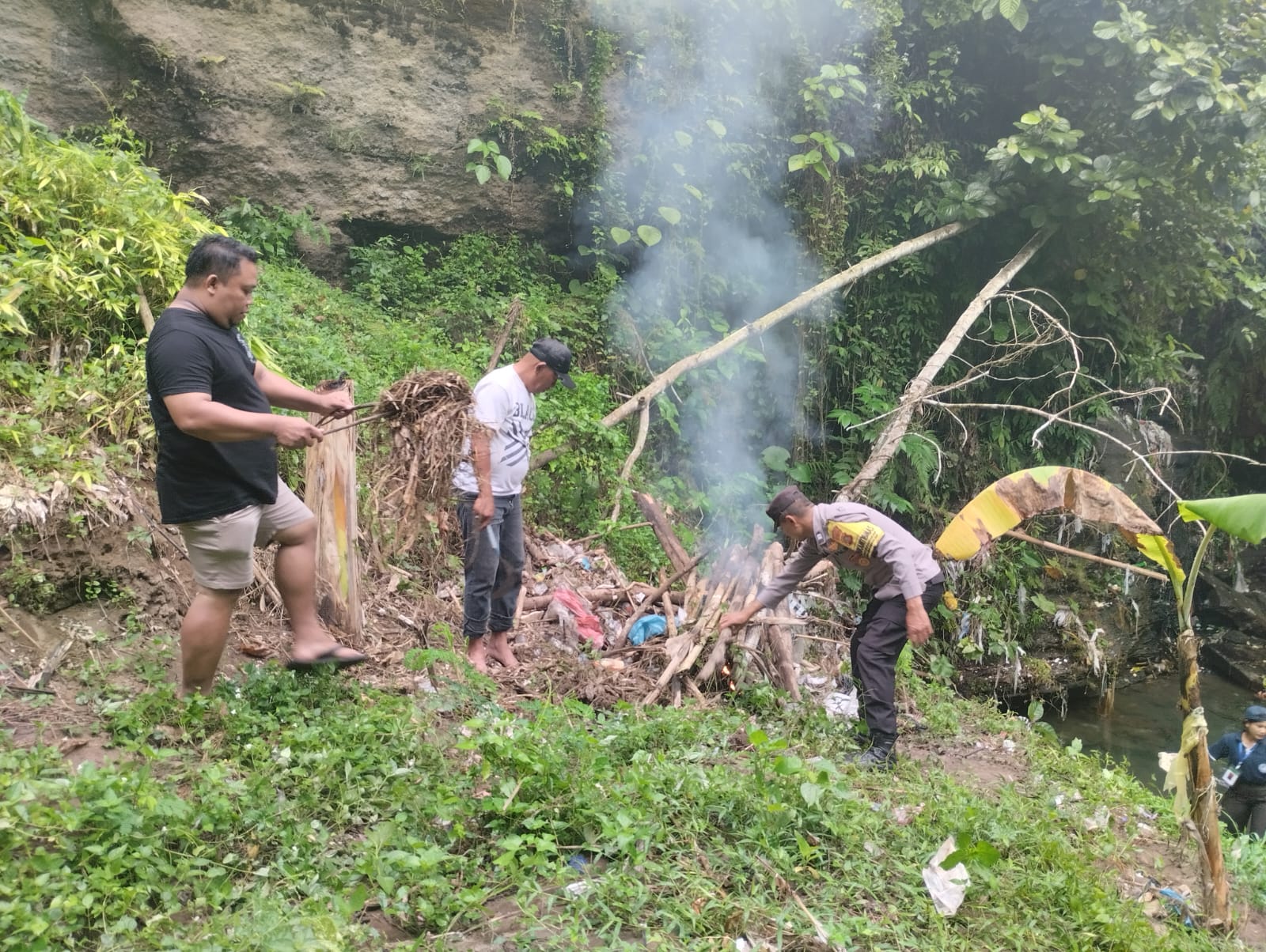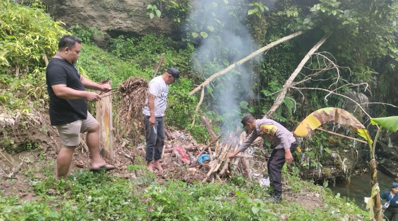 Polres Klungkung– Bhabinkamtibmas Desa Banjarangkan, Aiptu I Komang Sarjana, bersama Perbekel, staf desa, serta mahasiswa dari Universitas Udayana, Warmadewa, dan Mahasaraswati melaksanakan kegiatan bersih-bersih sampah plastik di kawasan wisata Angkringan The Beji, Goa Jepang, Banjarangkan, (25/7).