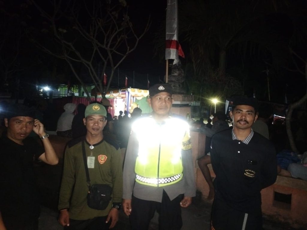 Bhabinkamtibmas Batumadeg Bersama Linmas dan Pecalang Amankan Malam Resepsi HUT RI ke-80