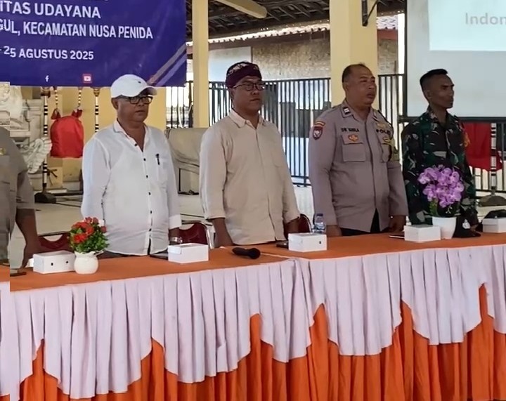 Polres Klungkung – Bhabinkamtibmas Desa Batununggul Aiptu Dewa Susila Dharma melaksanakan sambang ke Balai Desa Batununggul, Nusa Penida, Klungkung dalam rangka menghadiri undangan Pelepasan KKN PPM Periode ke-XXXI Tahun 2025 Universitas Udayana Denpasar, (21/8).