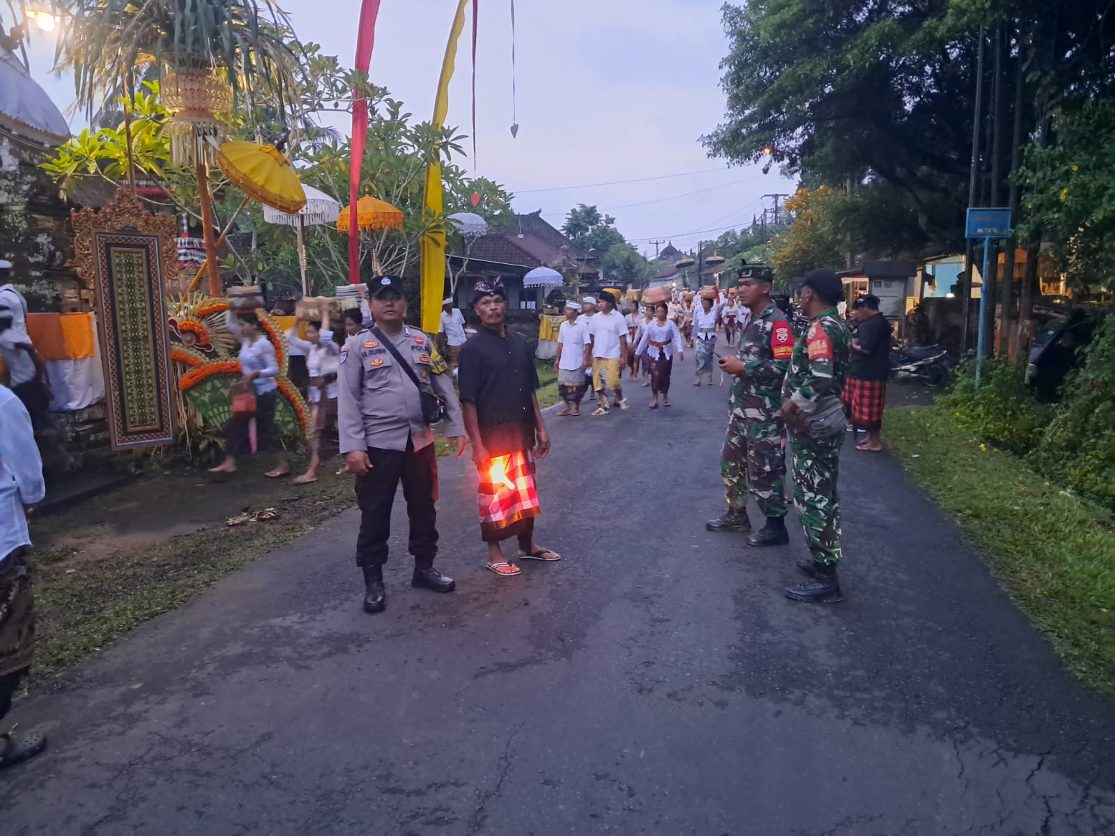 Bhabinkamtibmas Bungbungan Bersinergi Amankan Upacara Dewa Yadnya di Pura Dalem Agung.