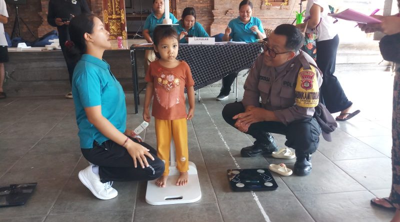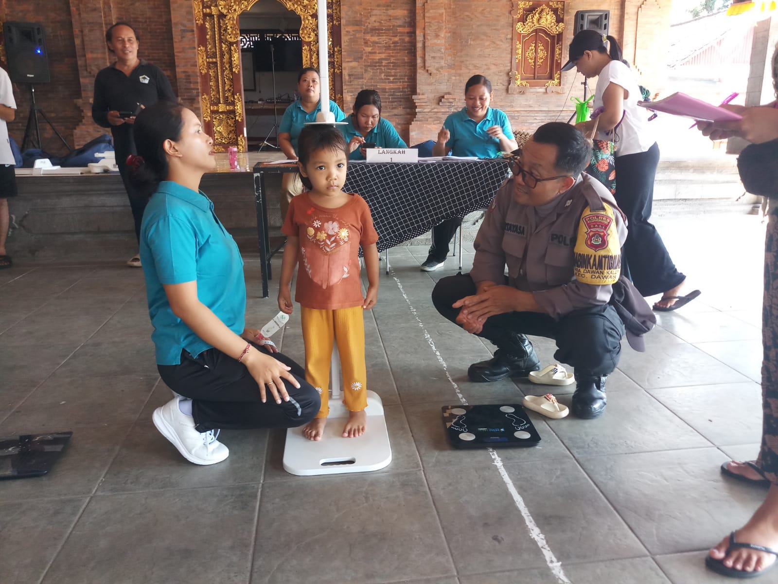 Polres Klungkung – Bhabinkamtibmas Desa Dawan Kaler Polsek Dawan Aiptu I Nyoman Kertayasa melaksanakan kegiatan sambang dan monitoring Posyandu Balita dan Lansia yang rutin dilaksanakan setiap bulan oleh kader PKK Banjar Sengguan bersama petugas Puskesmas Dawan I, bertempat di Balai Banjar Sengguan, Desa Dawan Kaler, Dawan, Klungkung, (13/10).