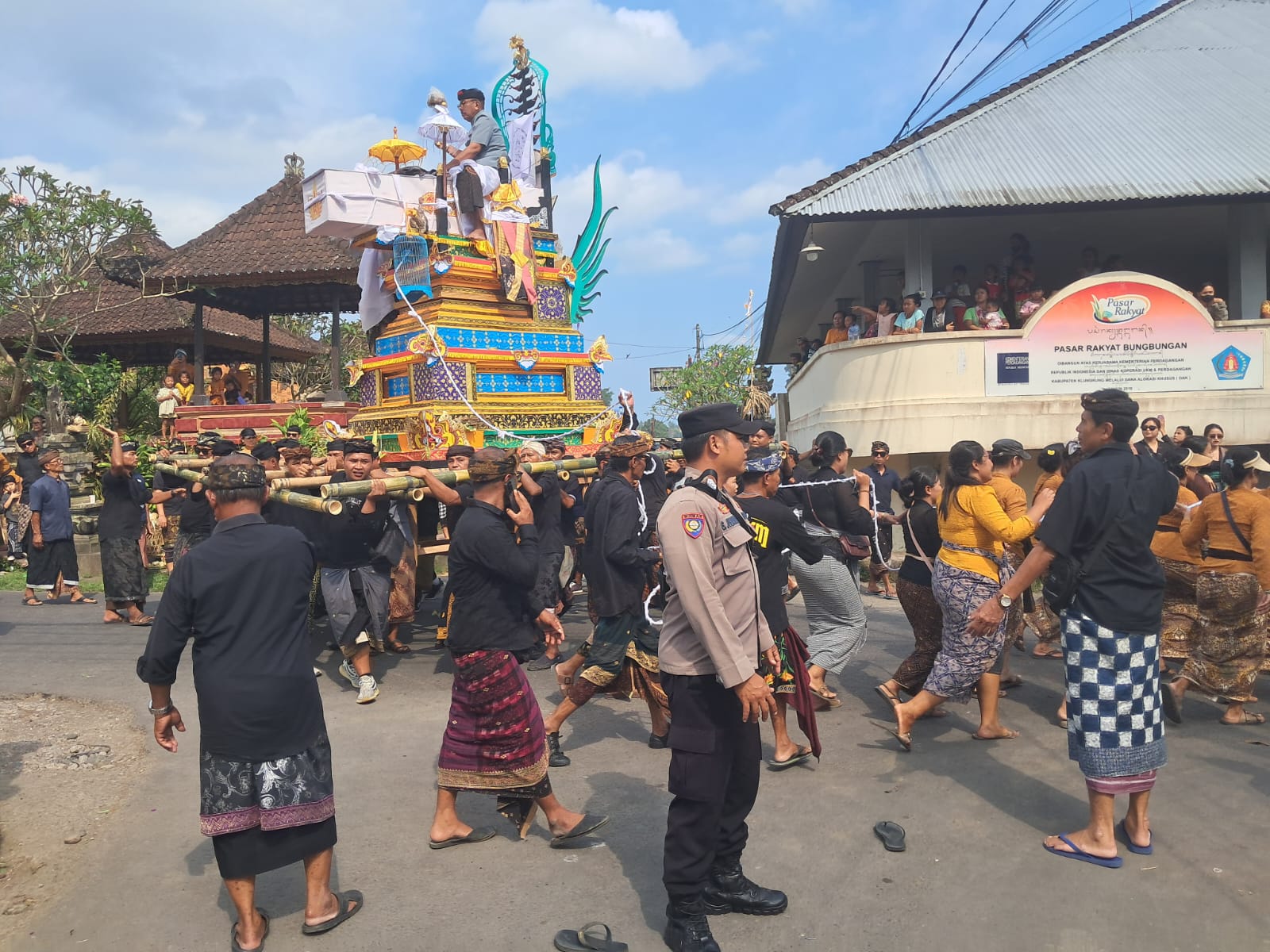 Kapolsek Banjarangkan AKP I Ketut Budiarsana, S.H., M.H., mengatakan bahwa kehadiran anggota Polri di tengah masyarakat dalam setiap kegiatan adat merupakan bentuk pelayanan dan pengayoman kepada masyarakat.