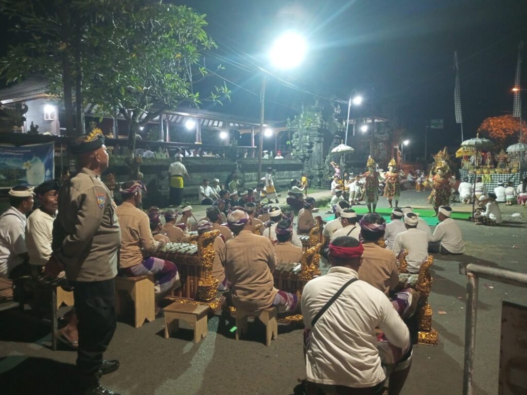 Kapolsek Dawan, AKP I Ketut Nariawan, S.H., menyampaikan bahwa kehadiran personel Polri dalam setiap kegiatan adat dan keagamaan merupakan bentuk pelayanan kepada masyarakat.
