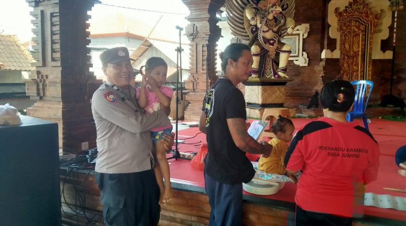 Polres Klungkung – Sebagai bentuk kepedulian terhadap kesehatan masyarakat, Bhabinkamtibmas Desa Jumpai Polsek Klungkung Aiptu Wayan Saba melaksanakan sambang ke Balai Banjar Kangin, Desa Jumpai, Klungkung untuk memonitor kegiatan Posyandu Kamboja yang diperuntukkan bagi balita, (29/10).