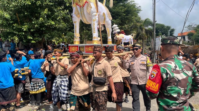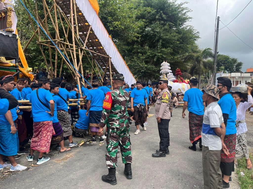 Kehadiran aparat keamanan bersama pecalang bertujuan memastikan seluruh rangkaian prosesi berjalan dengan lancar, aman, dan tertib.