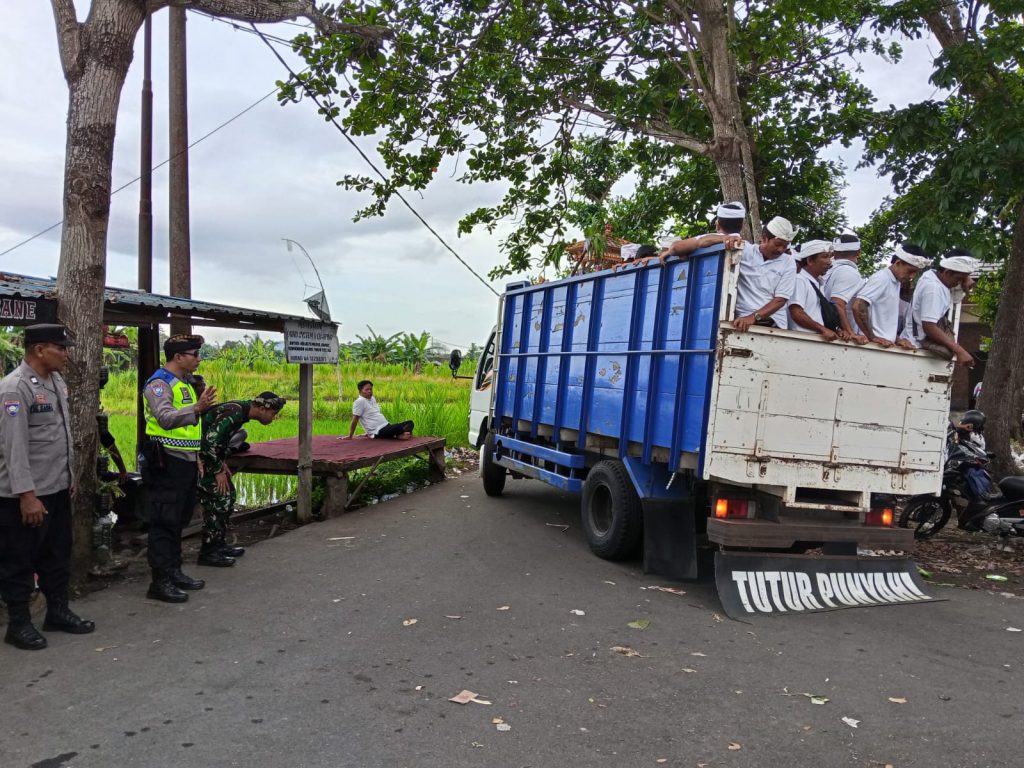 Dalam kegiatan tersebut, Bhabinkamtibmas bersinergi dengan Babinsa Desa Nyanglan, personel Patwal Sat Lantas Polres Klungkung, serta pecalang Desa Adat Nyanglan untuk memastikan jalannya prosesi keagamaan berjalan aman, tertib, dan lancar.