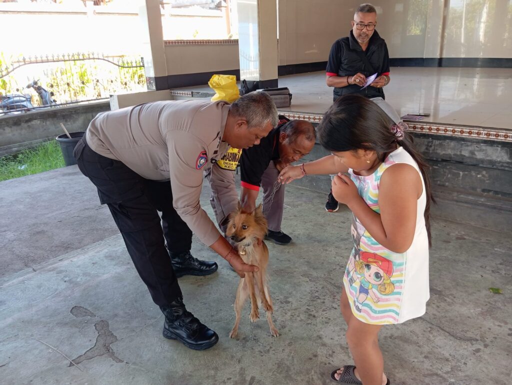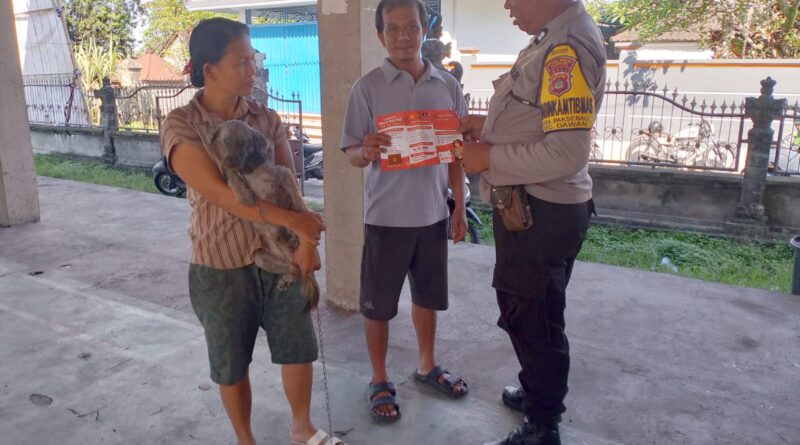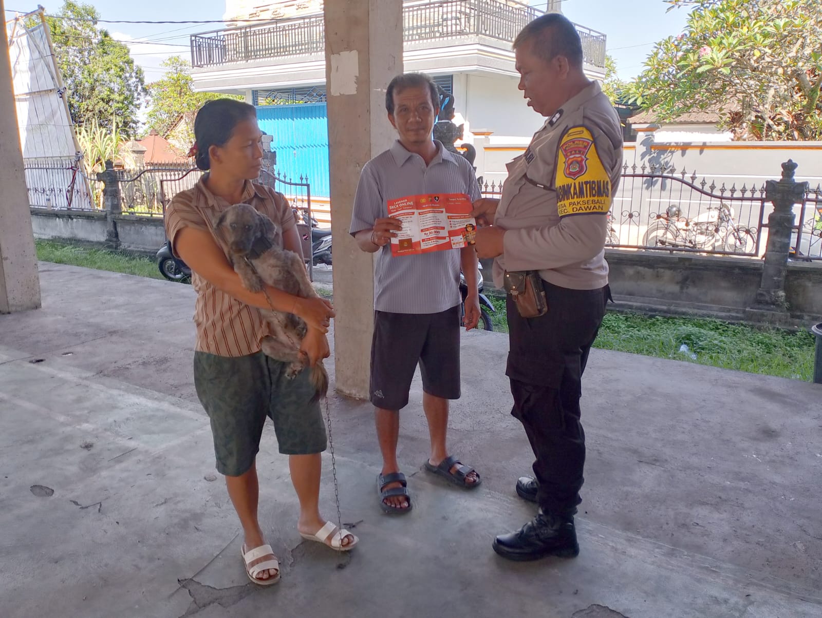 Polres Klungkung – Bhabinkamtibmas Desa Paksebali, Polsek Dawan, Aiptu I Wayan Rudiastama, melaksanakan kegiatan sambang di Balai Banjar Bucu, Desa Paksebali, Kecamatan Dawan, Kabupaten Klungkung, dalam rangka monitoring kegiatan vaksinasi HPR (Hewan Penular Rabies), (22/4).