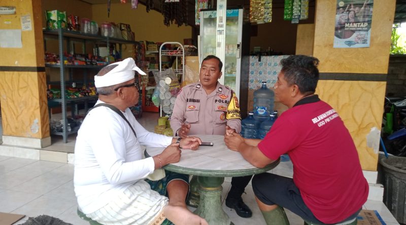 Dalam kegiatan tersebut, Aiptu I Wayan Murdana berdialog dengan warga sekaligus menyampaikan imbauan kamtibmas, agar masyarakat selalu waspada terhadap potensi gangguan keamanan serta aktif memberikan informasi sekecil apa pun kepada pihak kepolisian.