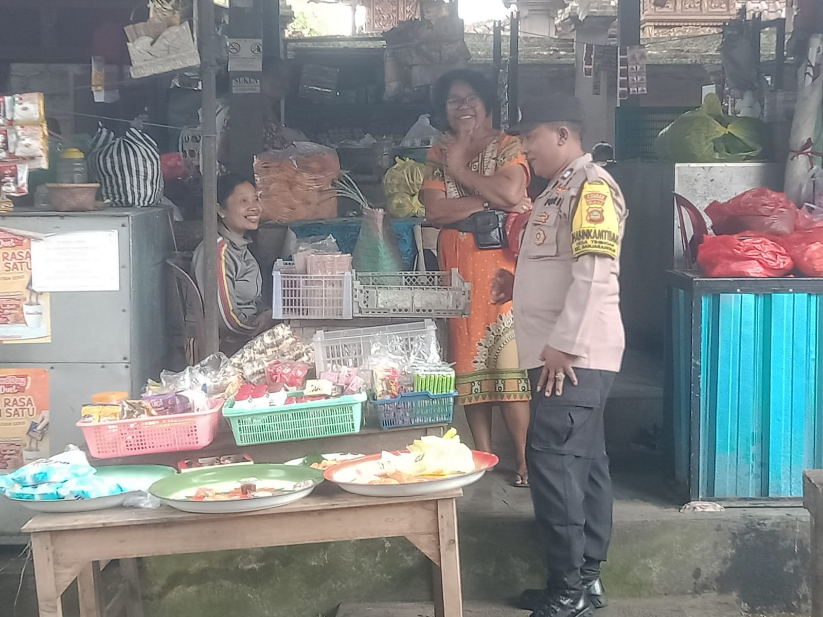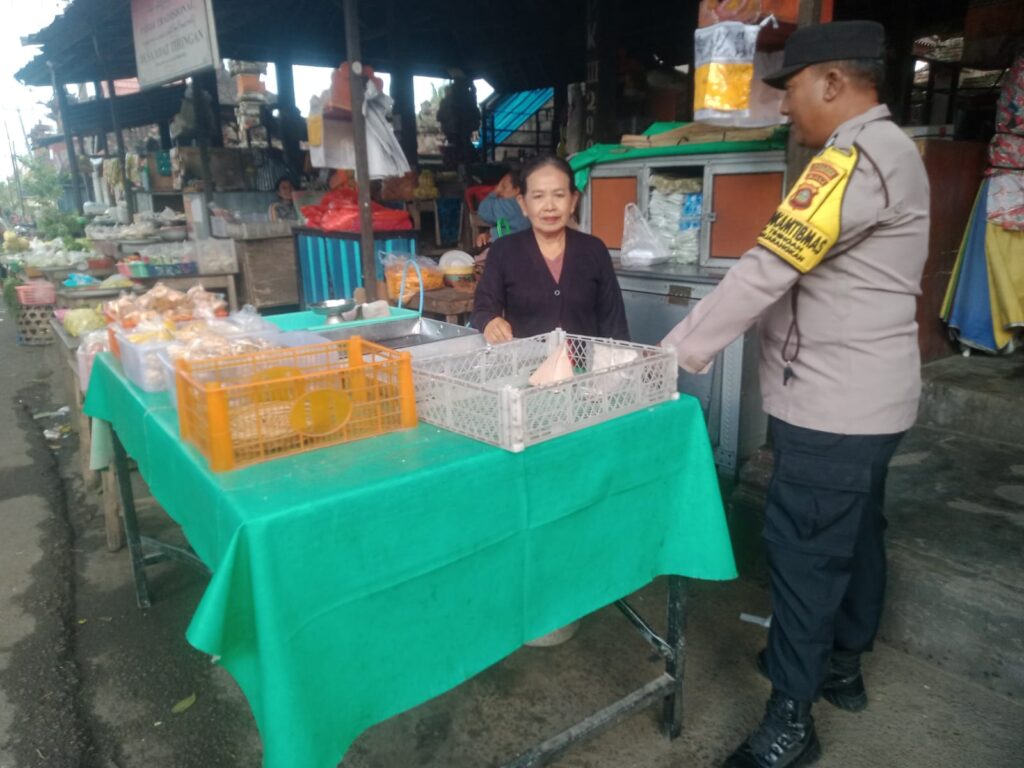 Polres Klungkung – Bhabinkamtibmas Desa Tihingan, Polsek Banjarangkan, Aiptu I Wayan Murdana, melaksanakan kegiatan sambang di Pasar Tihingan, Desa Tihingan, Kecamatan Banjarangkan, Kabupaten Klungkung, (20/4).