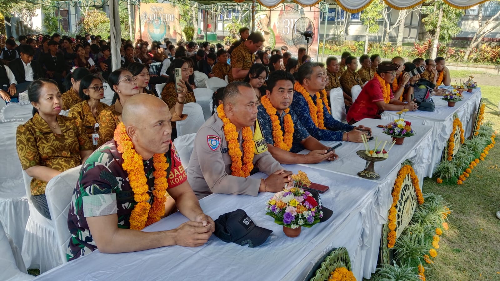 Bhabinkamtibmas Desa Tusan Hadiri HUT ke-34 SMAN 1 Banjarangkan dan Pelepasan Siswa.