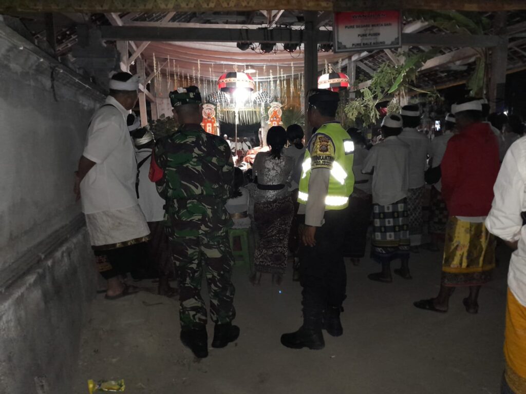 Bersinergi dengan Babinsa dari Koramil 1610 Banjarangkan dan pecalang melaksanakan pengamanan untuk memastikan acara berjalan lancar tanpa gangguan.Bhabinkamtibmas juga berkoordinasi dengan panitia pelaksana, tokoh adat, dan pihak terkait lainnya untuk membahas rencana pengamanan dan area yang perlu mendapatkan perhatian khusus.