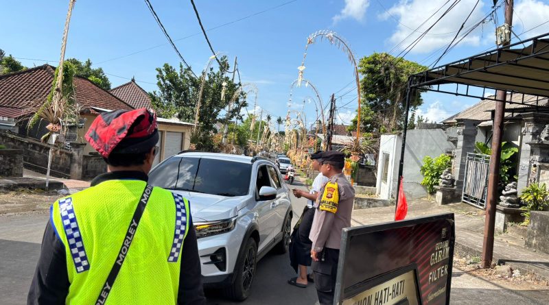 Bhabinkamtibmas Pesinggahan Amankan Hari Kedua Pujawali Pura Penataran Agung Ratu Pasek