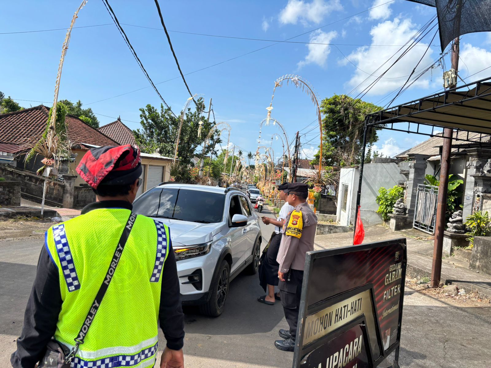 Kapolsek Dawan AKP I Gede Budiarta, S.H., M.H. menyampaikan bahwa kehadiran personel merupakan wujud pelayanan Polri dalam mendukung kelancaran kegiatan keagamaan di masyarakat.