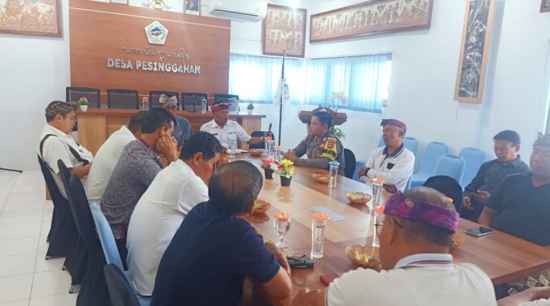 Polres Klungkung – Bhabinkamtibmas Desa Pesinggahan, Bripka I Dewa Gede Martawan, S.H., menghadiri undangan rapat pembahasan permohonan pembukaan usaha di wilayah Desa Pesinggahan. Kegiatan ini berlangsung di Kantor Desa Pesinggahan, Kecamatan Dawan, Kabupaten Klungkung, (14/8).