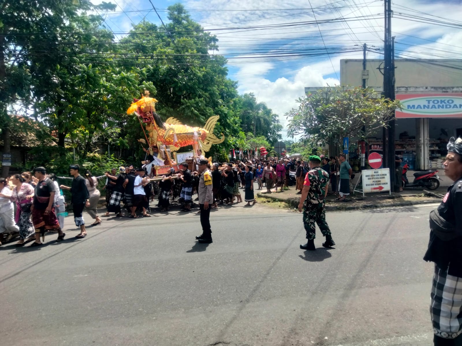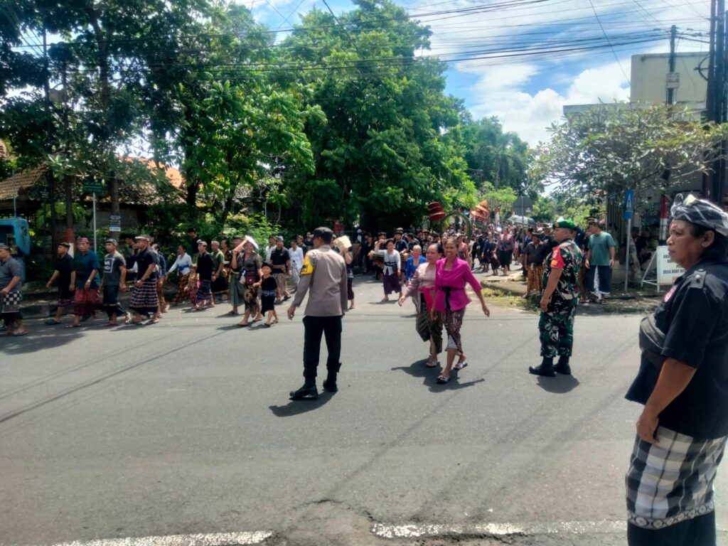 Dalam pelaksanaannya, Bhabinkamtibmas bersinergi dengan Babinsa serta pecalang adat setempat untuk melakukan pengaturan arus lalu lintas guna memastikan kelancaran prosesi upacara serta aktivitas masyarakat di sekitar lokasi.
