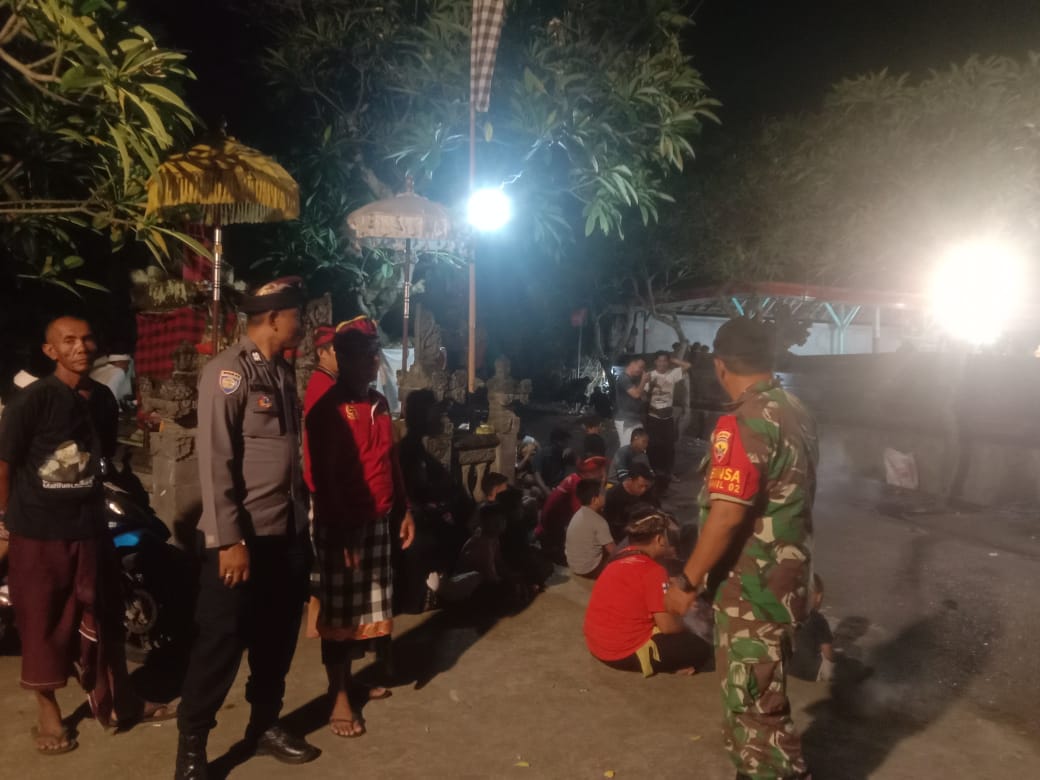 Pengamanan dilakukan dengan bersinergi bersama Babinsa dan pecalang Desa Adat Sidayu Nyuhaya guna memastikan rangkaian kegiatan adat berlangsung aman, tertib, dan lancar.