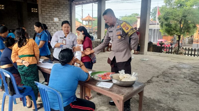 Seperti yang dilakukan oleh Bhabinkamtibmas desa Takmung, Kecamatan Banjarangkan, Klungkung Aiptu I Nengah Kariyasa melaksanakan sambang serta memonitor kegiatan Posyandu Balita di Balai Dusun Banda, Desa Takmung, Kecamatan Banjarangkan, Klungkung (16/1/2025).