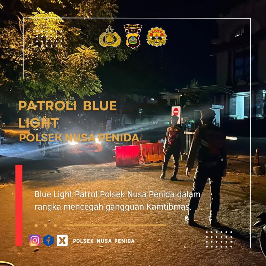 Patroli blue light yang dimaksudkan yaitu kegiatan Patroli rutin Kepolisian yang dilakukan pada malam hari dengan rute Pelabuhan Kapal Roro menggunakan sarana mobil Patroli dinas Sat Samapta Polsek Nusa Penida dan menyalakan sorot lampu rotator khas Kepolisian yang berwana biru.
