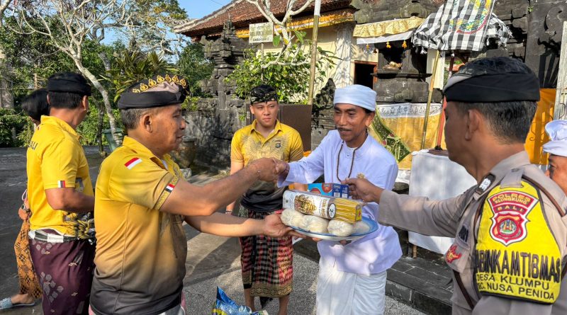 Polres Klungkung – Bhabinkamtibmas Desa Batununggul Aiptu Dewa Made Susila Dharma bersama personel Polsubsektor Pelabuhan Sampalan dan pecalang melaksanakan kegiatan