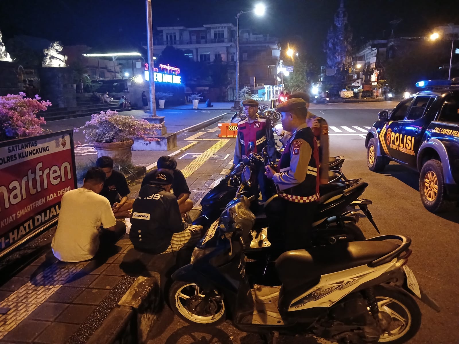 Dalam rangka menciptakan situasi dan kondisi (cipkon) yang aman dan nyaman, Polres Klungkung melalui Sat Samapta laksanakan patroli malam.