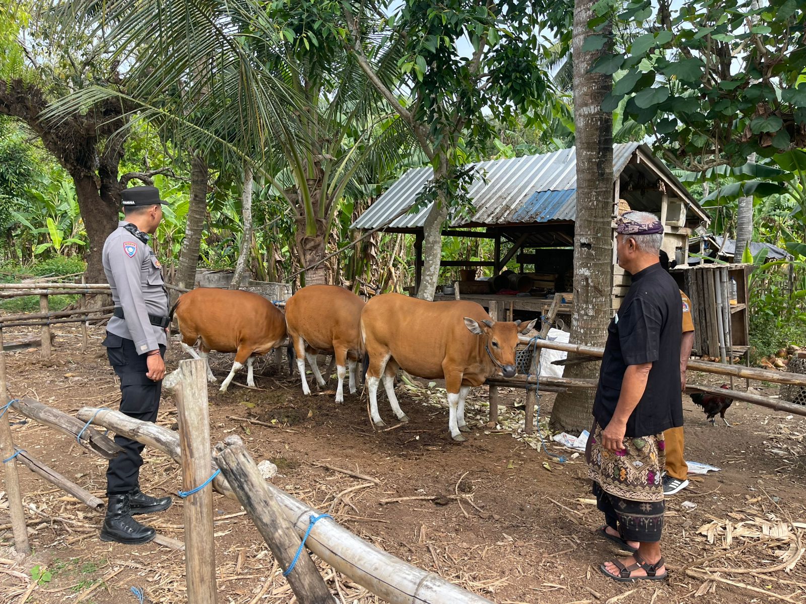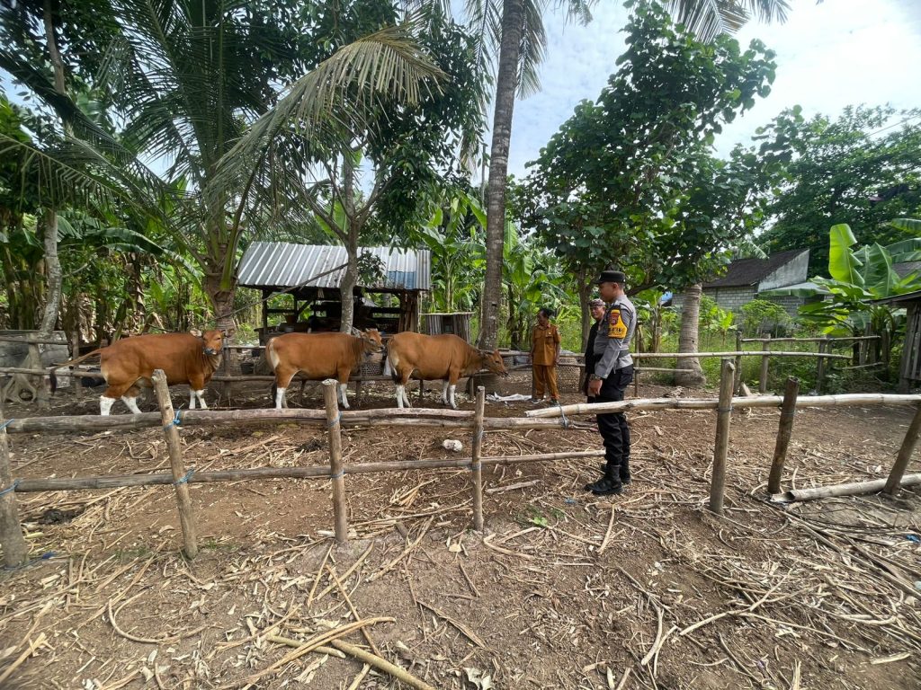 Polres Klungkung – Bhabinkamtibmas Desa Kutampi Kaler, Polsek Nusa Penida, Briptu Putu Aditya Dewa Putra, S.H., melaksanakan kegiatan pendampingan negosiasi bibit sapi di Banjar Celuk, Desa Kutampi Kaler, Nusa Penida, Klungkung (29/9).