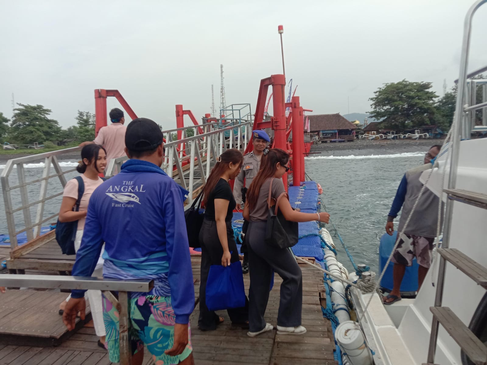 Seperti yang dilaksanakan di dermaga Boat The Angkal yang berlokasi di pantai Kampung dan dermaga Sekarjaya di Pantai Banjar Bias, Kusamba, Dawan, Klungkung personel melaksanakan pengamanan guna menciptakan rasa aman dan tertib bagi aktivitas masyarakat penyedia dan pengguna jasa angkutan laut (9/6).