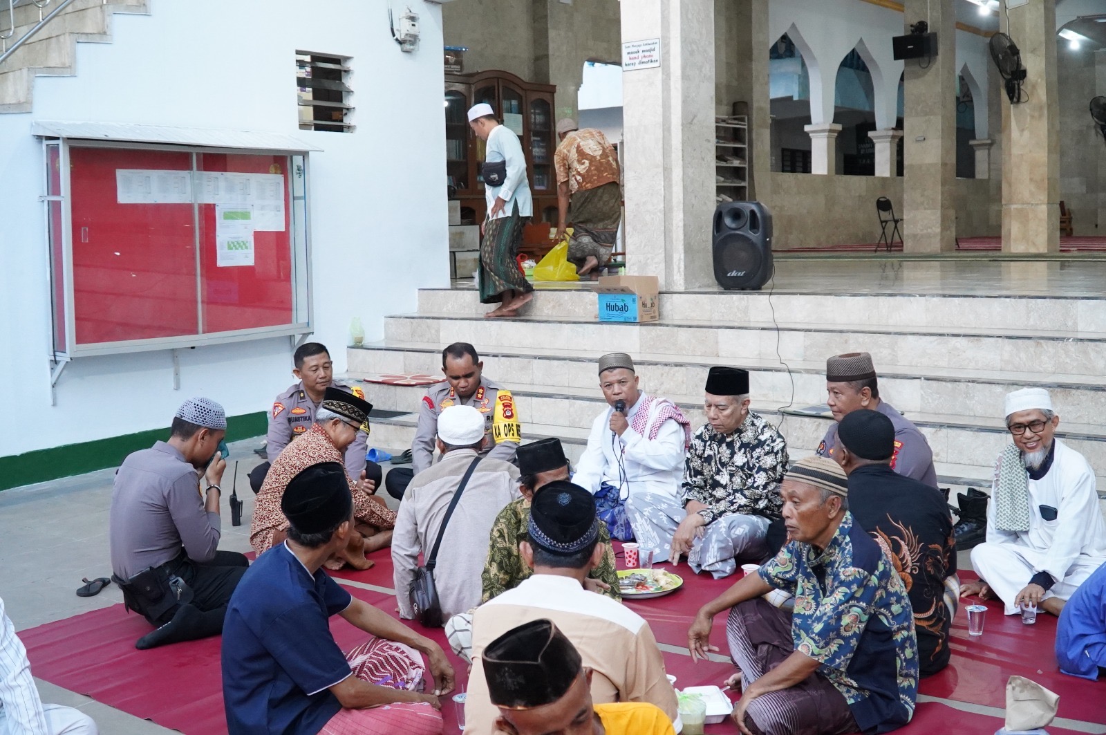 Kapolres Klungkung AKBP Alfons W P Letsoin, S.I.K., mengikuti kegiatan buka puasa bersama dengan Masyarakat dan tokoh agama di Mesjid Al-Hikmah, Kampung Lebah Klungkung.