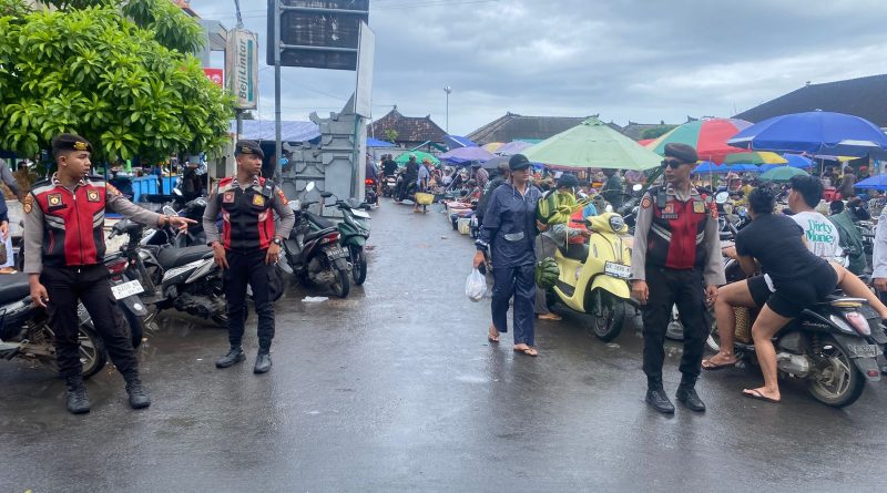 Jelang Kuningan, Polsek Nusa Penida Tingkatkan Pengamanan di Pasar Mentigi.