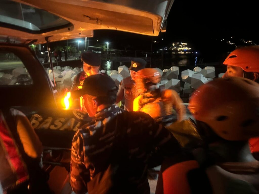 Sekitar pukul 19.00 WITA, tim evakuasi bersama jenazah tiba di pelabuhan, kemudian jenazah langsung dievakuasi ke dalam ambulans yang telah disiagakan untuk dibawa ke RSUD Gema Santi.