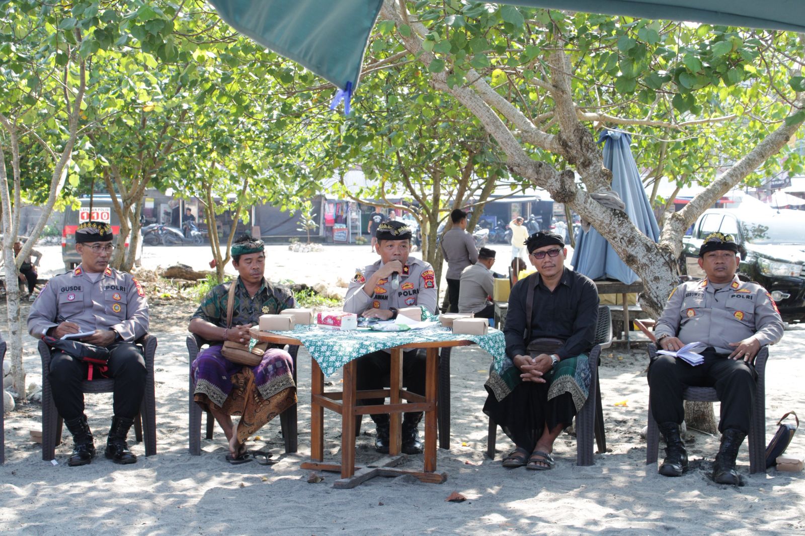 Dalam suasana santai dan penuh keakraban, warga menyampaikan langsung berbagai aspirasi, mulai dari kemacetan lalu lintas di kawasan wisata, pendataan penduduk pendatang, hingga harapan agar layanan SIM Keliling dapat segera berjalan optimal di Nusa Penida.