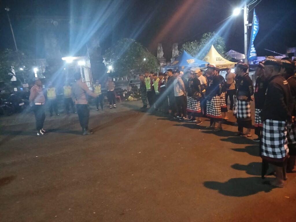 Kabag Ops didampingi Kapolsek Banjarangkan AKP I Made Sutika meberikan arahan sebelum pelaksanaan tugas antara lain agar personel yang mengisi titik titik pengamanan bersinergi dengan pecalang serta Linmas Desa Nyalian.