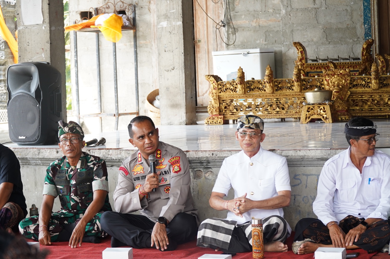 Dalam sambutannya, Kapolres Klungkung menegaskan pentingnya menciptakan situasi yang damai dan kondusif. Ia menyampaikan bahwa Polri bersama Pemerintah Daerah sudah beberapa kali memfasilitasi mediasi dan berharap masyarakat dapat berpikir jernih serta menjunjung nilai kekeluargaan.