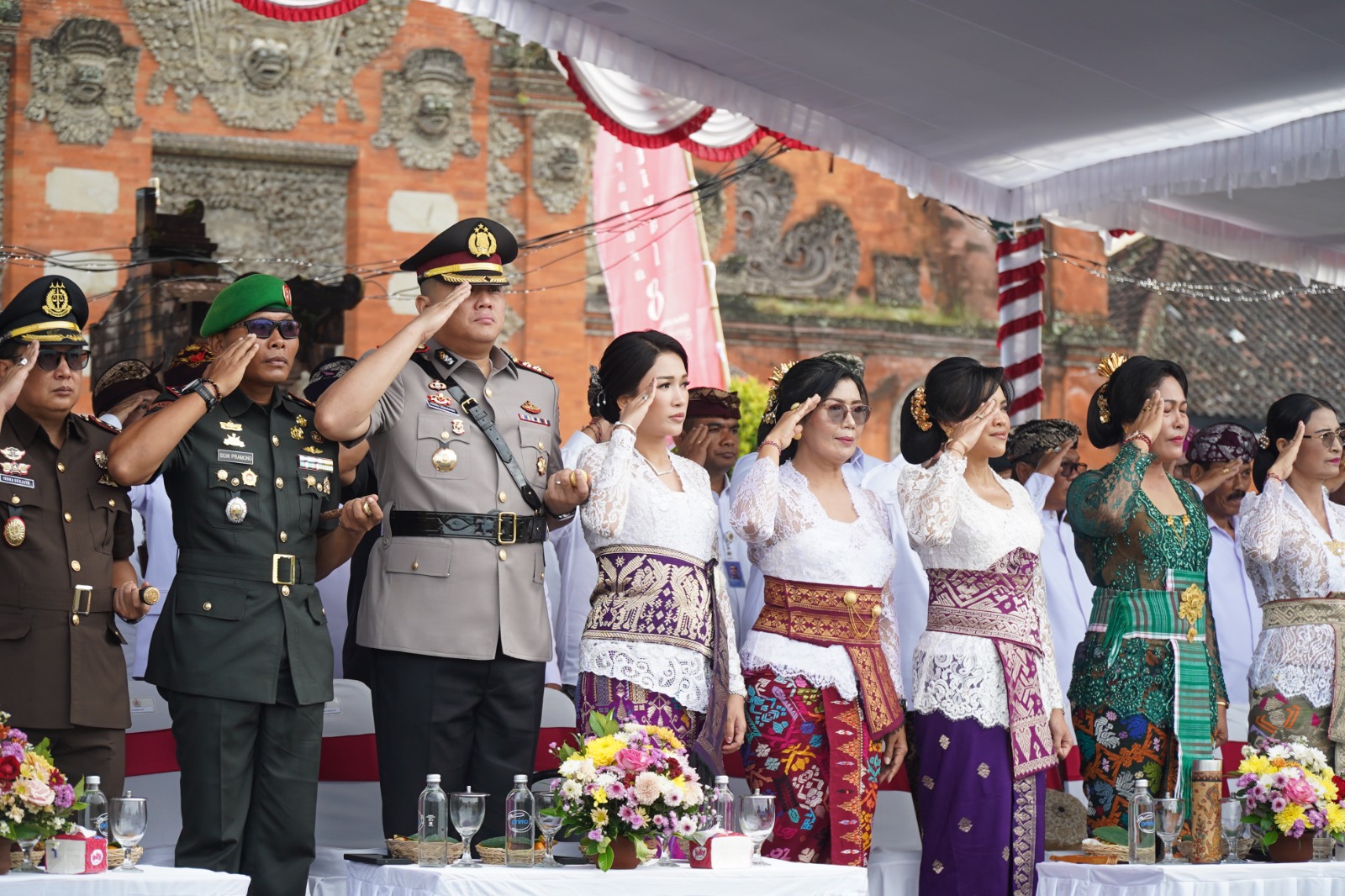 Kegiatan ini turut dihadiri oleh Danrem 163/Wirasatya, Ida Dalem Semara Putra, jajaran Forkopimda Kabupaten Klungkung beserta istri, Wakil Bupati Klungkung, para kepala OPD, tokoh masyarakat, serta berbagai unsur instansi vertikal dan peserta upacara dari TNI, Polri, Satpol PP, Dishub, BPBD, hingga pelajar.