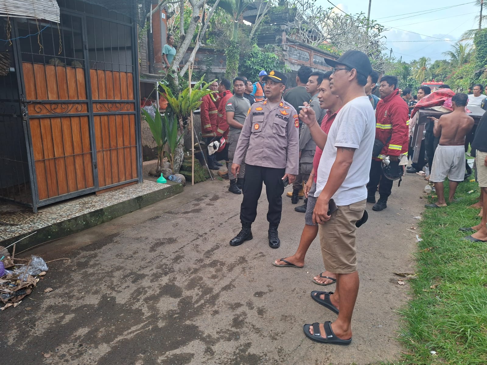 Polres Klungkung – Kapolsek Banjarangkan, AKP I Ketut Budiarsana, memimpin langsung personelnya mendatangi Tempat Kejadian Perkara (TKP) kebakaran yang terjadi di sebuah warung milik Ida Bagus Made Sudiarsa (49), berlokasi di Dusun Tegalwangi, Desa Nyalian, Kecamatan Banjarangkan, Kabupaten Klungkung, (12/8).