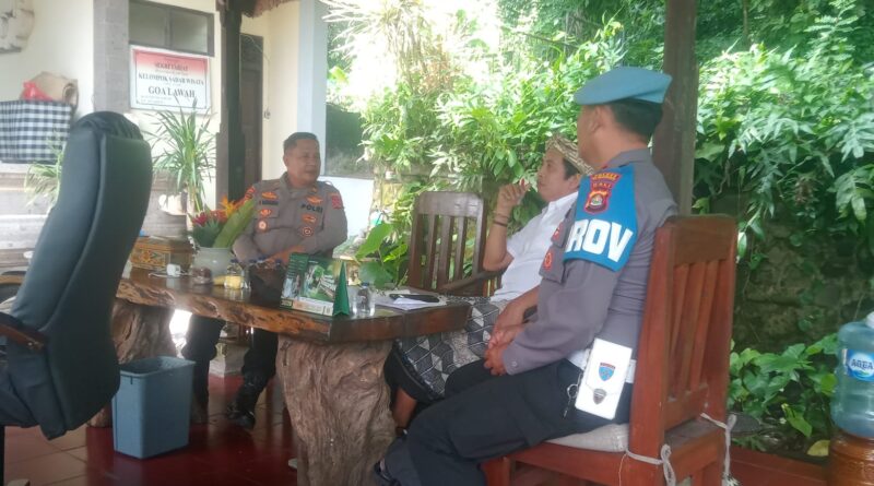Polres Klungkung – Kapolsek Dawan AKP I Ketut Nariawan, S.H., bersama Kanit Reskrim dan PS. Kanit Propam Polsek Dawan melaksanakan kegiatan sambang dan dialogis dengan I Putu Juliadi, S.E., selaku Juru Raksa sekaligus Bendahara Pura Sad Khayangan Goa Lawah, Desa Pesinggahan, Kecamatan Dawan, Kabupaten Klungkung, (14/1).