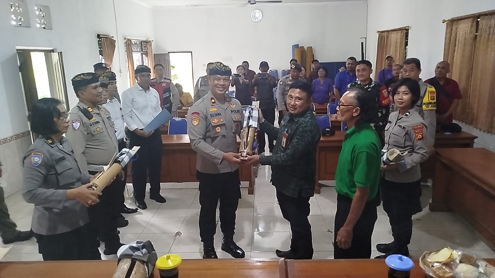 Polres Klungkung – Kapolsek Klungkung Kompol I Wayan Sujana, S.H., M.M. melaksanakan kegiatan Safari Kamtibmas yang dirangkaikan dengan Sosialisasi Kulkul Kamtibmas serta Layanan Kepolisian 110 Presisi Polres Klungkung yang bebas pulsa. Kegiatan tersebut dilaksanakan di Desa Manduang, Kecamatan Klungkung, sebagai upaya memperkuat sinergi Polri dengan masyarakat dalam menjaga keamanan dan ketertiban, (13/1).