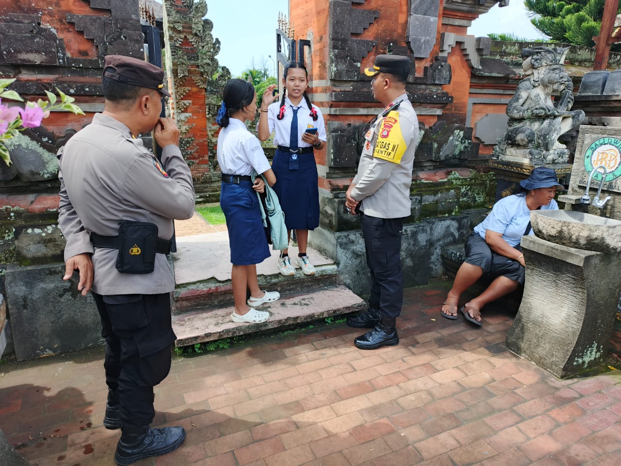 Dalam kegiatan tersebut, personel Polsek Klungkung menyambangi serta berdialog langsung dengan para pengunjung, khususnya adik-adik siswa yang tengah berkunjung ke kawasan objek wisata.