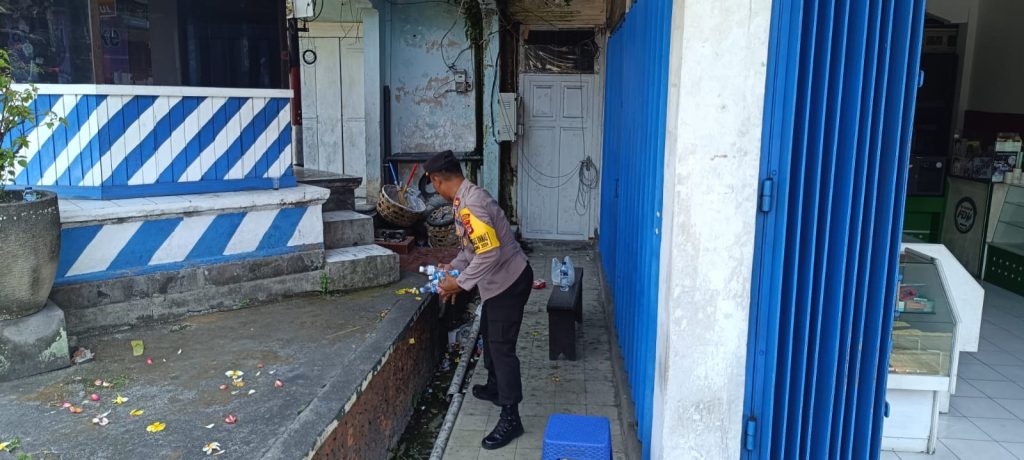 Polres Klungkung Melalui Kasat Binmas Iptu Ida Bagus Gede Ariada Bersama dengan Pemerhati Lingkungan “Bumi Kita” menggelar kegiatan gotong royong dengan membersihkan sampah plastik sisa botol minuman yang di minum oleh para pemedek yang melaksanakan kegiatan Upacara Melasti Karya di Pura Pasar Agung yang mecepuk/ bertemu dengan sesuhunan pura agung kentel gumi bertempat di Catus Pata Klungkung. Kamis, 7/11/2024