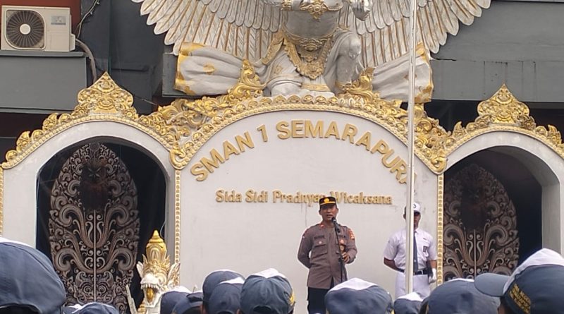 Polres Klungkung – Kasat Binmas Polres Klungkung Iptu Ida Bagus Gede Ariada menjadi pembina upacara bendera di SMAN 1 Semarapura, (13/10).