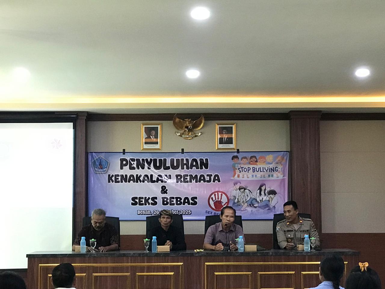 Polres Klungkung – Dalam rangka menciptakan situasi keamanan dan ketertiban masyarakat (kamtibmas) yang kondusif serta membentuk generasi muda yang berkarakter positif, Kasat Binmas Polres Klungkung Iptu Ida Bagus Gede Ariada, S.H., melaksanakan kegiatan penyuluhan tentang kenakalan remaja serta dampak dan pencegahan seks bebas di Ruang Pertemuan Kantor Desa Besan, Kecamatan Dawan, Kabupaten Klungkung, (26/10).