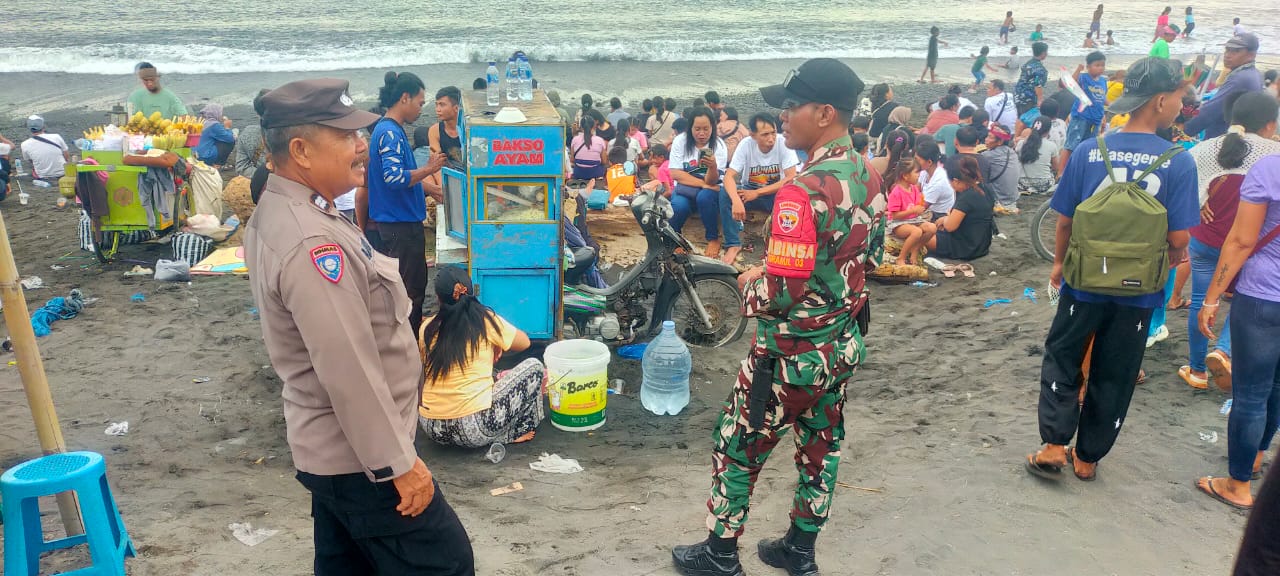Kegiatan pengamanan dilakukan untuk memastikan situasi tetap aman dan kondusif mengingat meningkatnya kunjungan masyarakat ke kawasan pantai.