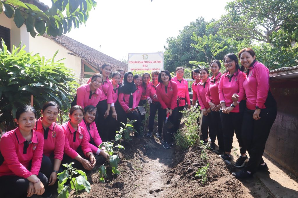 Pada pagi hari ini Ketua Bhayangkari Cabang Klungkung bersama Ibu ibu Bhayangkari lainnya menanam berbagai jenis pohon seperti Pohon Cabai, Tomat, Terong, Jeruk Purut dan juga bunga gemitir, Selain menanaman pohon, Ibu Bhayangkari juga memanen lengkuas hasil tanamanan sebelumnya