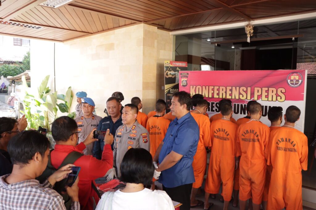 Kapolres Klungkung AKBP Umar,S.I.K.,M.H., menyampaikan dihadapan awak media bahwa Press Confrence pada siang ini dimana Sat Resnarkoba Polres Klungkung berhasil mengungkap 12 Orang tersangka dalam kasus tindak pidana narkoba dengan 6 TKP yang berbeda