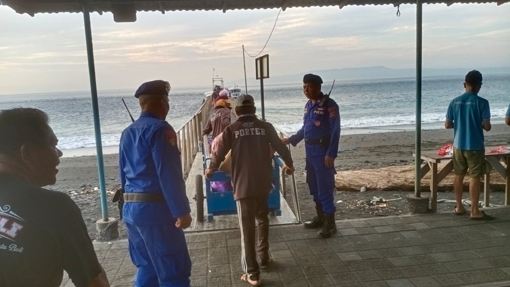 Personel dari Satuan Polairud Polres Klungkung yang terlibat dalam Operasi Ketupat Agung 2025 melaksanakan pengamana di pelabuhan pelabuhan yang ada di wilayah hukum Polres Klungkung.