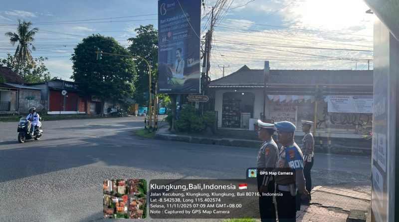 Si Propam Polres Klungkung Laksanakan Pengawasan terhadap Kegiatan PG Pagi di Simpang Empat Bubun Galiran