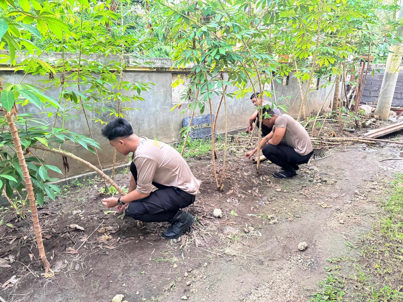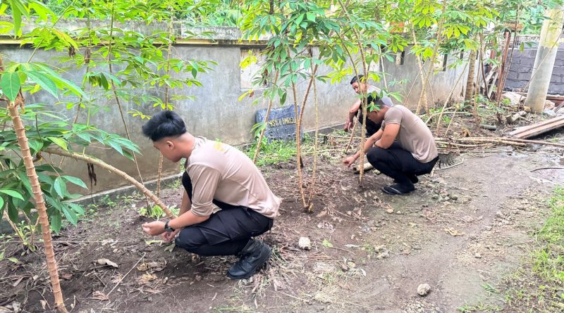 Dalam rangka mendukung program ketahanan pangan nasional melalui konsep Pekarangan Bergizi, Polsek Nusa Penida melaksanakan kegiatan pemeliharaan tanaman singkong yang telah ditanam sebelumnya di dua lokasi, yaitu halaman belakang Mako Polsek Nusa Penida dan halaman Polsubsektor Kawasan Pelabuhan Nusa Penida. 4/6