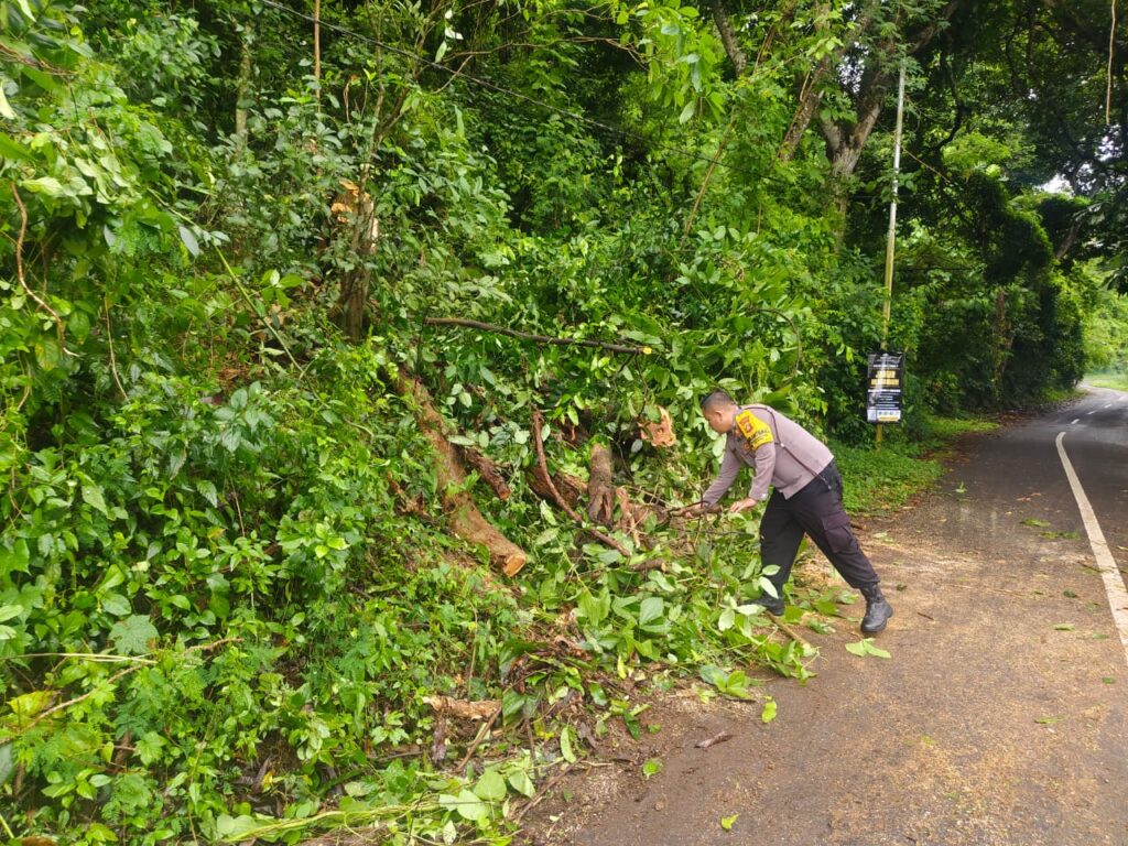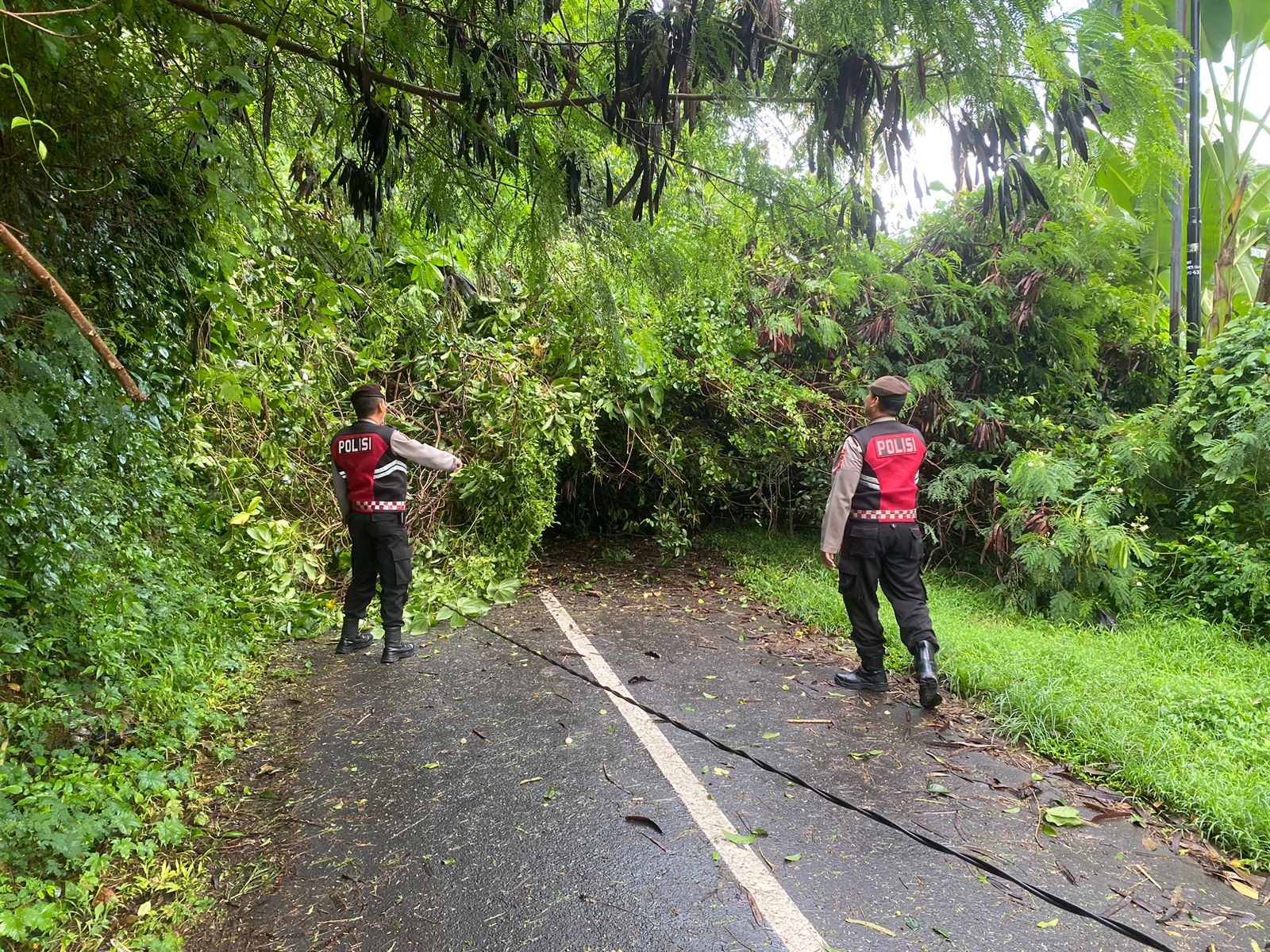 Mendapat laporan tersebut, personel Polsek Dawan bersama tim BPBD serta masyarakat setempat langsung turun ke lokasi untuk melakukan pembersihan dan evakuasi batang serta ranting pohon yang menutupi badan jalan. Proses penanganan dilakukan secara gotong royong hingga akhirnya akses jalan dapat kembali dilalui kendaraan.