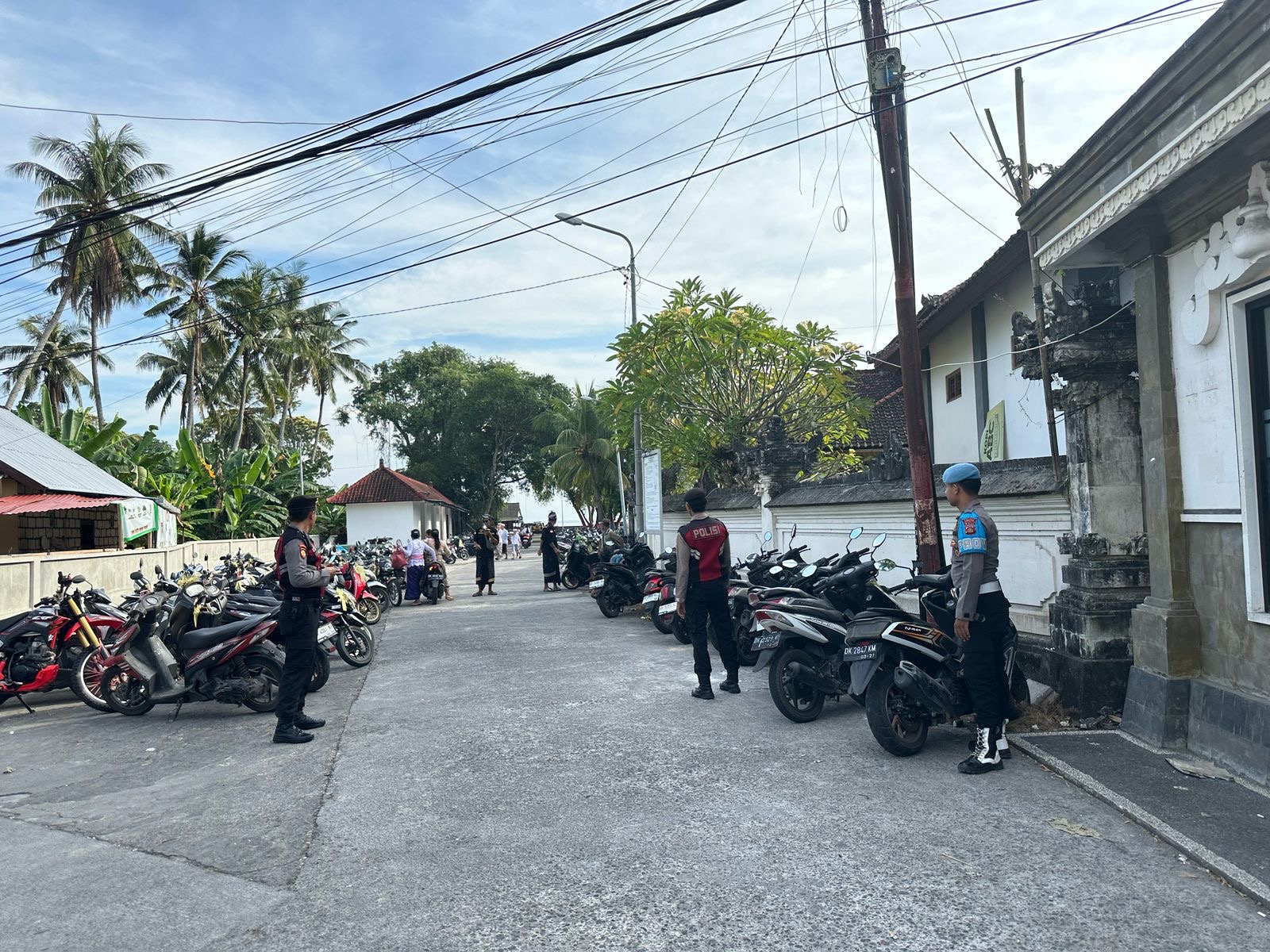Personel Polsek Nusa Penida Amankan Persembahyangan Hari Raya Kuningan di Pura Dalem Ped