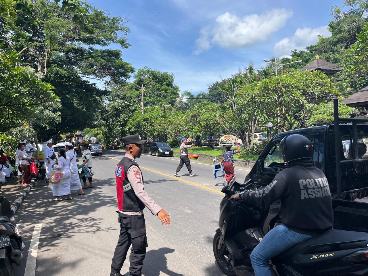 Kapolsek Dawan AKP l Gede Budiarta, S.H., M.H., mengatakan,“Melalui kegiatan ini, kami ingin menunjukkan bahwa Polri selalu hadir di tengah masyarakat, memberikan pelayanan terbaik, dan mendukung kelancaran setiap aktivitas, khususnya yang berkaitan dengan ibadah,” ujarnya .